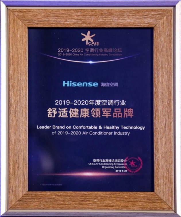 8月21日,由中国家用电器协会与国家信息中心信息化和产业发展部指导、中国家电网主办的“2019—2020中国空调行业高峰论坛”在北京召开。海信空调同样在国内市场主要空调品牌中脱颖而出,问鼎“2019—2020年度空调行业舒适健康领军品牌”,代表海信从制冷制热到舒适健康的布局再次走到行业前列。