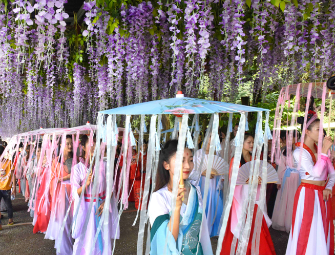 在浓情八月,观音山景区还盛装推出了首届姻缘文化节,精彩不断,浪漫持续升温。其中有传统汉服婚礼秀、粤港澳万人相亲会、浪漫游园会、婚纱摄影展、三言情诗等。尤其是传统汉服文化为主题的迎七夕大型汉服婚礼秀活动,举办当天吸引了来自深莞惠等周边地区的汉服爱好者前来互动,更涌现出大量汉服CP,瞬时古韵翩翩,爱意绵绵。