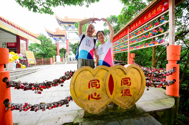 据了解,在首届东莞观音山姻缘文化节举办期间,象征圆满爱情的姻缘新景点“月老台”顺利落地东莞观音山,当天很多爱侣积极报名参加,在观音山度过一个特别的七夕。据悉,当天众多爱侣中,有共同喜爱汉服的年轻情侣,穿着汉服情侣装,相约观音山;还有正在观音山拍摄婚纱照的年轻准夫妻,在月老台前,默默许下爱情誓言;在人群中,还有一对来自东莞东泰花园小区的金婚夫妻,一路相伴,并在月老台前对另一半说出酝酿已久的情话,向广大游客展示了爱情最美的样子。