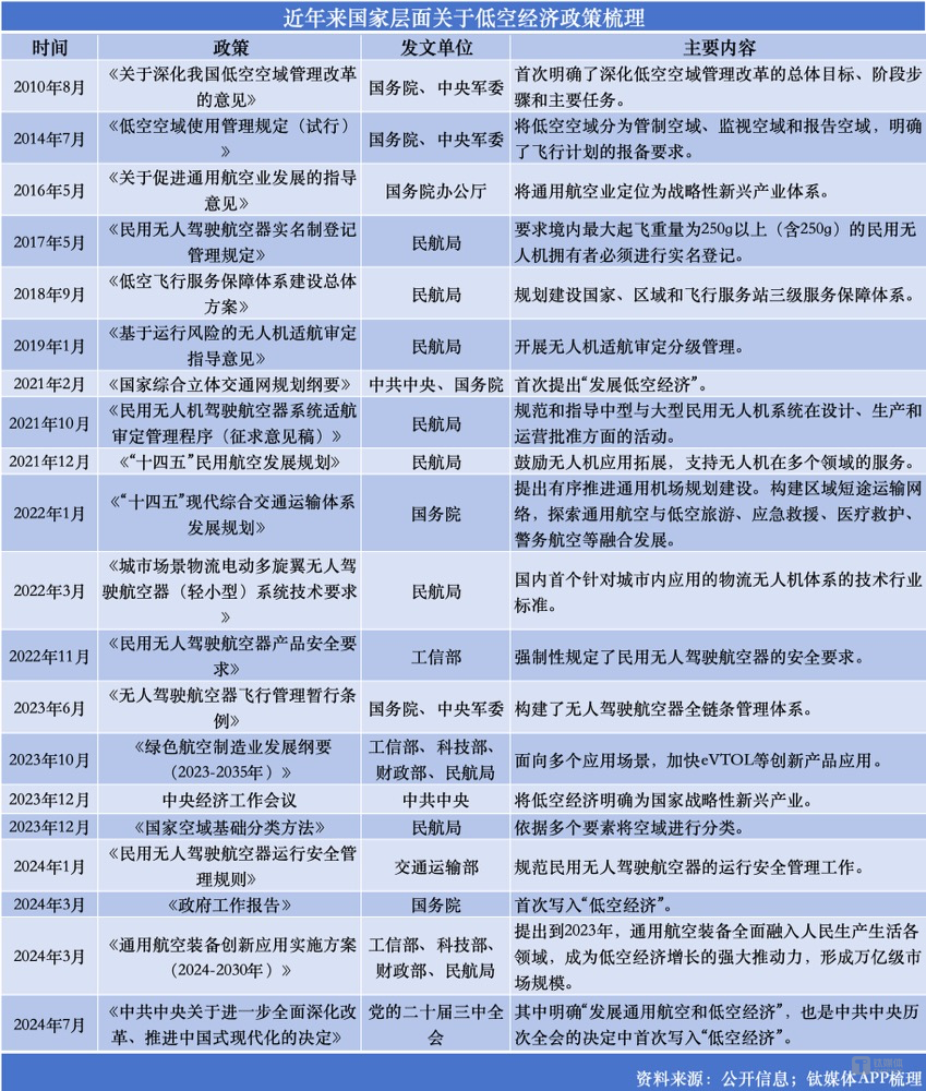 国内低空经济火热的推力,首先是政策驱动。