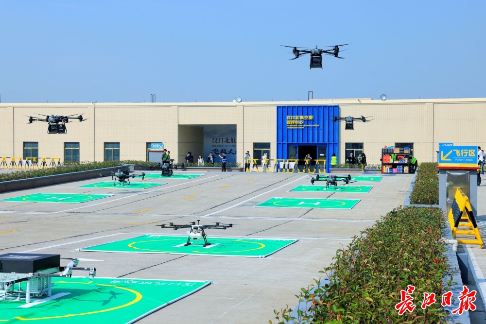 11月12日,汉口北低空港正式启动运营,多架无人机腾跃而起,带着订单商品飞往目的地。长江日报记者胡冬冬 摄